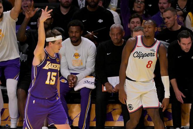 总体来说,快船阵容老化、进攻点单一的问题突出,难以与整体运转流畅、詹姆斯回归后如虎添翼的湖人持续抗衡,不过,这场比赛的X因素是艾顿缺阵,祖巴茨能否打出穿湖人内线,双方的角色球员能否站出来得分,也影响比赛的结果首节比赛,八寸开局连拿5分,快船这边的邓恩表现更出色,连拿7分。随后,东契奇爆发,3分5中5,一人砍下24分,但是詹姆斯、里夫斯等人的进攻机会不多,反观快船得分点更多,柯林斯首节效率很高,3中3,包括2个3分,得到8分,哈登里突外投也得到11分,替补席的布朗、巴图姆合计拿下7分。首节打完,快船反而领先了湖人1分。