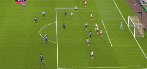 第23分钟,赖斯的传中被头球解围,桑德兰球员之间默契不够,埃泽断球后立即起脚射门,皮球没能命中目标。
