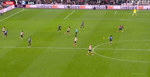第53分钟,苏比门迪做球,萨卡跟进打门偏出