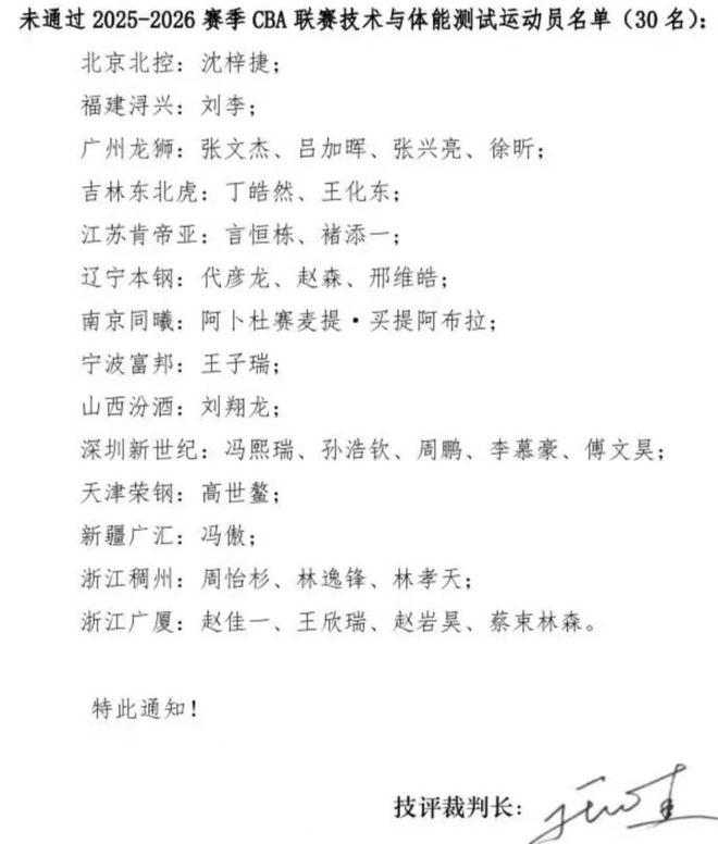目前,CBA20支球队的球员都是完成了体测,结果,有30名球员没有通过测试,对于这样的一个结果,也是可以理解,毕竟,一些老球员在体能方面会有一些吃亏。比如,深圳队主教练+球员双重身份的周鹏,就是在3分半钟的强度投篮测试中退出,从而没有通过本次测试。