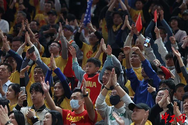 现场观众欢呼中国队进球