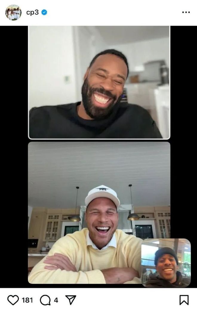 今天他又更新的IG,晒出了和格里芬、小乔丹视频连线的截图。