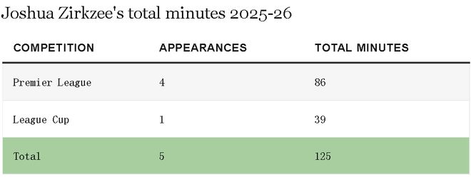 然而,齐尔克泽的机会有限。当姆贝莫和阿马德都在的时候,即便谢什科没伤,阿莫林也倾向于在重大比赛使用无锋阵,姆贝莫、库尼亚、阿马德和芒特都是40岁的葡萄牙少帅更信任的球员。