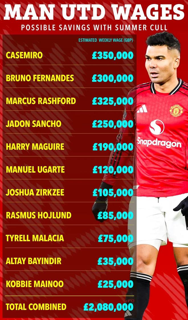 俱乐部希望大幅削减薪资支出,此次阵容清理可能每周节省210万英镑。