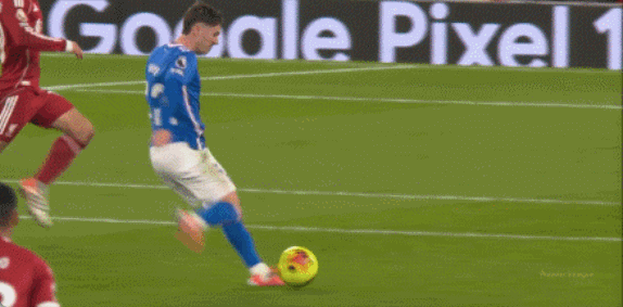 第37分钟,休姆禁区前一脚大力远射被阿利松扑了一下后击中横梁弹出。第44分钟,麦卡利斯特禁区头球攻门击中立柱出了底线。